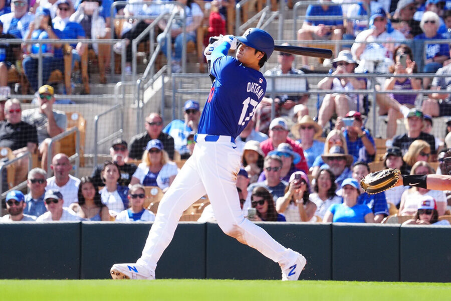 ドジャースの大谷翔平投手が3日(日本時間4日)、米アリゾナ州グレンデールで行われたロッキーズとのオープン戦に「2番・指名打者」で先発出場。3回の第3打席で右前適時打を放つと、代走を送られ交代した。3打数3安打2打点の活躍で、2月27日(同28日)の移籍後初実戦から7打席連続出塁となった。